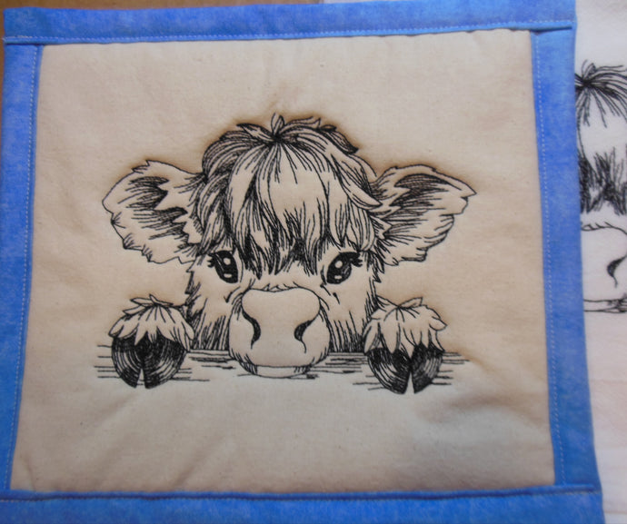 Peeking Highland Cow Sketch Towel & Potholder Set
