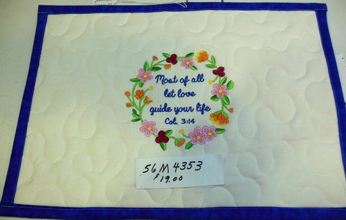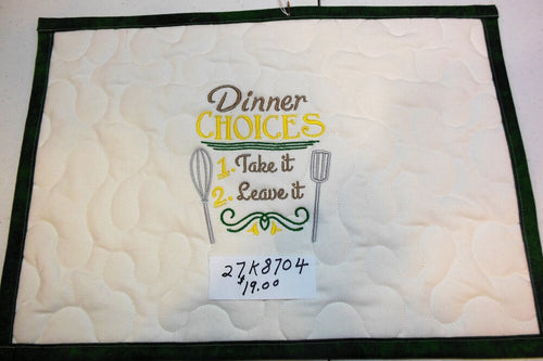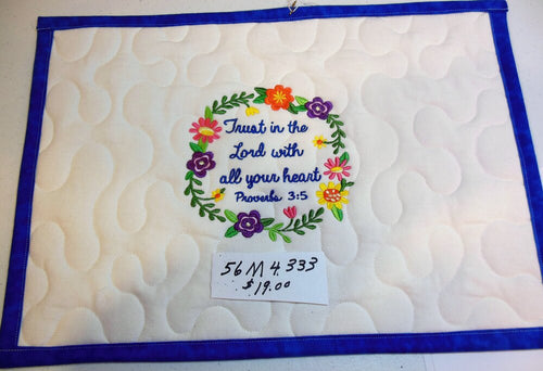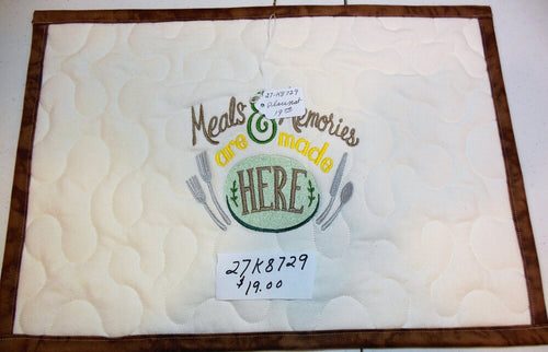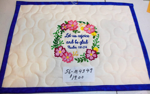 Place mats are approximately 13"x18" in size made up of two layers with batting in-between. Message Us for custom colors or designs. All of our designs can be applied to place mats!