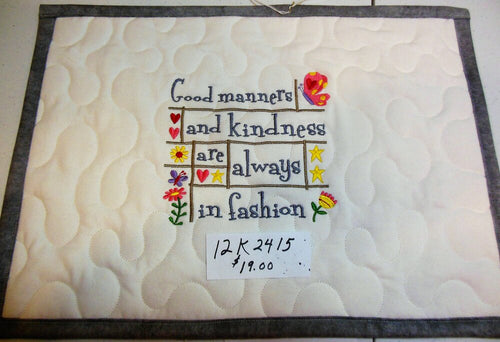 Place mats are approximately 13"x18" in size made up of two layers with batting in-between. Message Us for custom colors or designs. All of our designs can be applied to place mats!