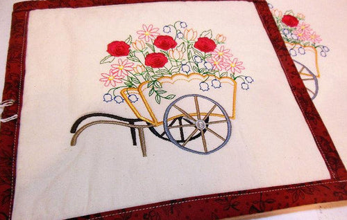 Floral Wheelbarrow 2 Towel & Potholder Set