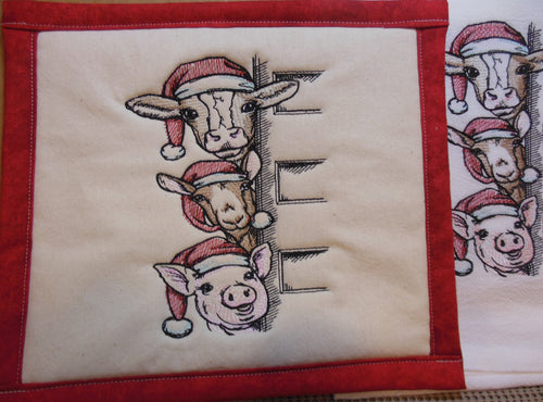 Peeking Christmas Cow, Goat, Pig Towel & Potholder Set