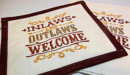 Inlaws And Outlaws Welcome Towel & Potholder Set