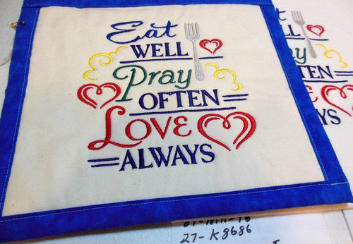 Eat Well Pray Often Love Always Towel & Potholder Set