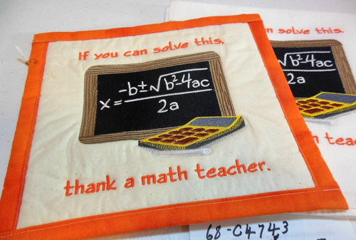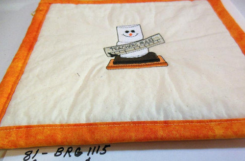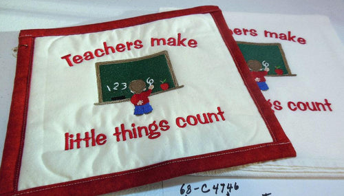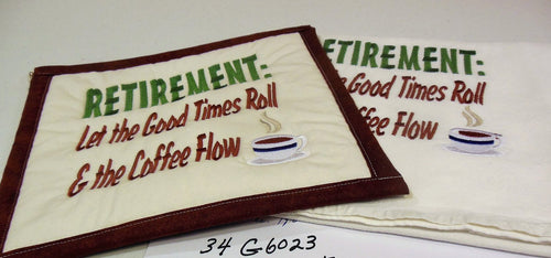 The kitchen towels are flour sack towels approximately 30"x30". The potholders are 9.5"x8.5" with the tops made of muslin and backs of cotton. Each have 2 layers of batting made from 80% cotton and 20% poly. All are pre-washed and ironed.
