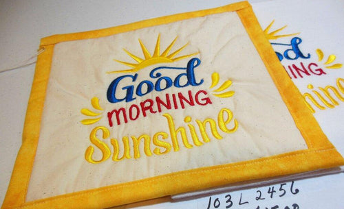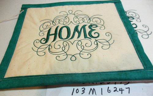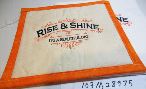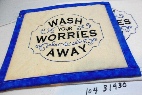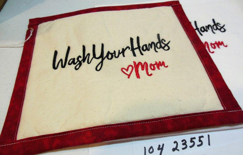 The kitchen towels are flour sack towels approximately 30"x30". The potholders are 9.5"x8.5" with the tops made of muslin and backs of cotton. Each have 2 layers of batting made from 80% cotton and 20% poly. All are pre-washed and ironed.